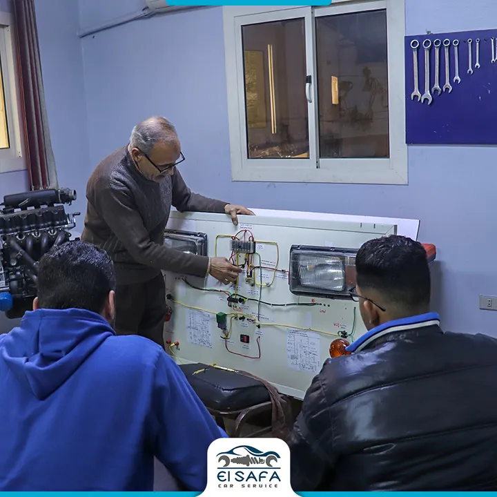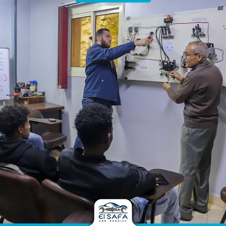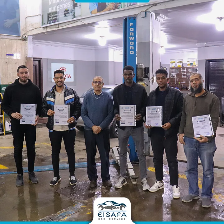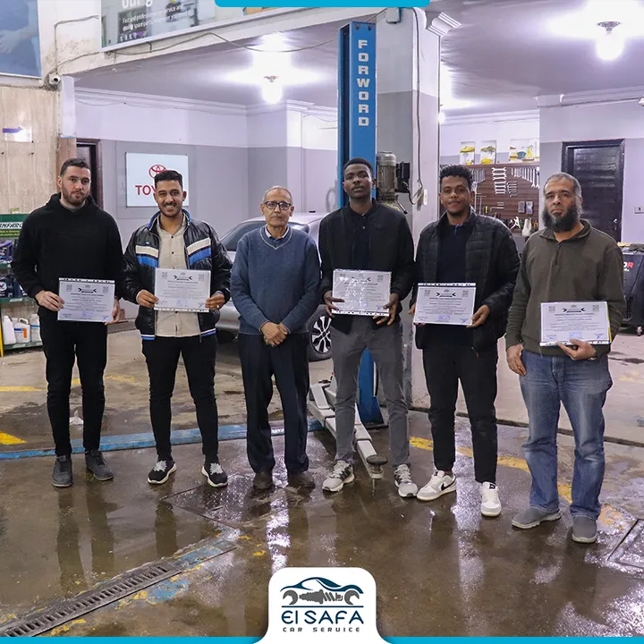 صور من خريجي كورس كهرباء السيارات في مركز الصفا، حيث يبدأ المتدرب طريق الاحتراف من خلال تدريب عملي ونظري متوازن. المركز يعمل في مجال صيانة السيارات منذ عام 1996 ويقدّم برامج تدريب احترافية منذ 2016